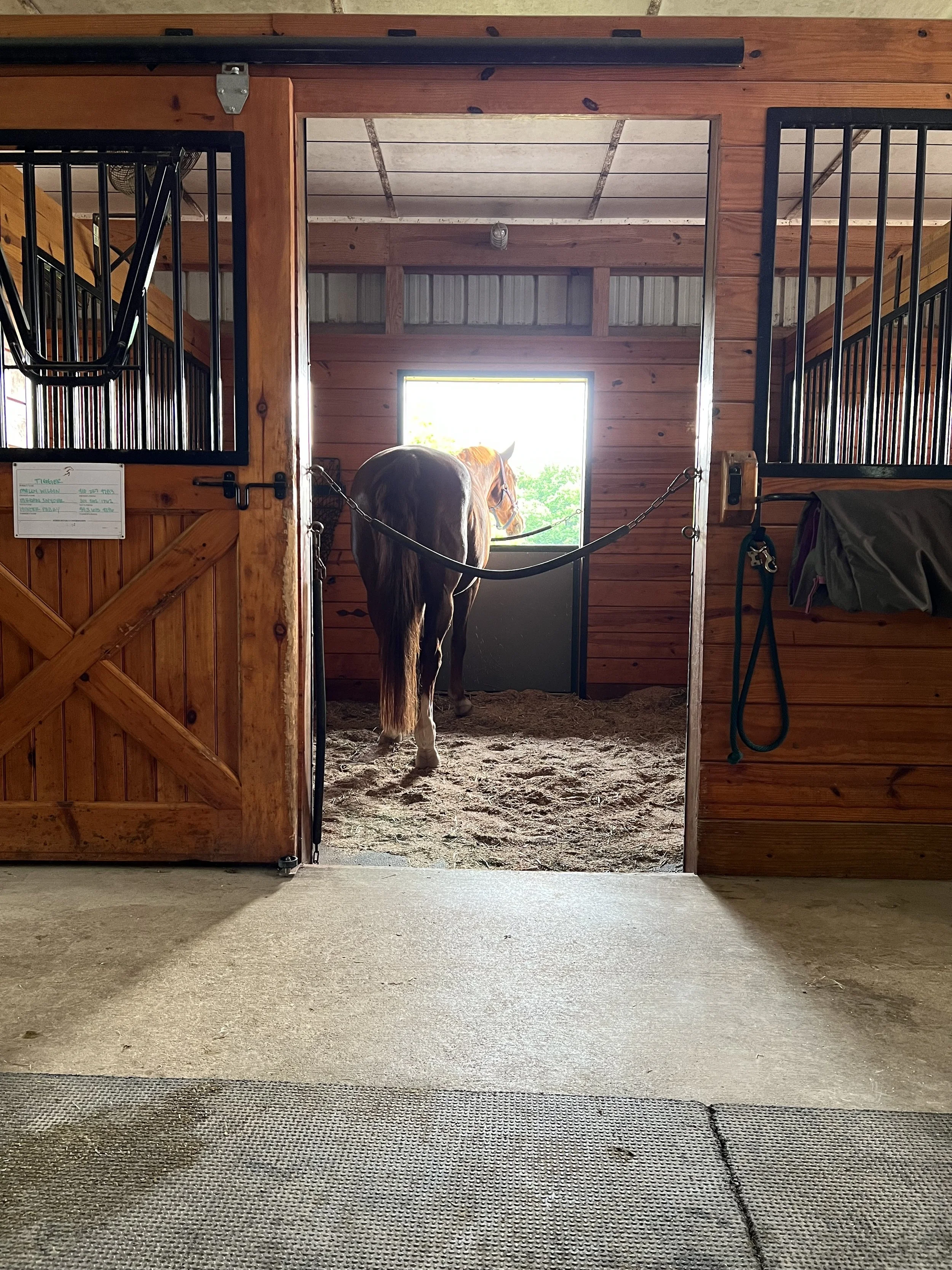 8 matted stalls complete with high quality shavings, two water buckets, hay net & beautiful dutch doors open to the outside for summer breezes